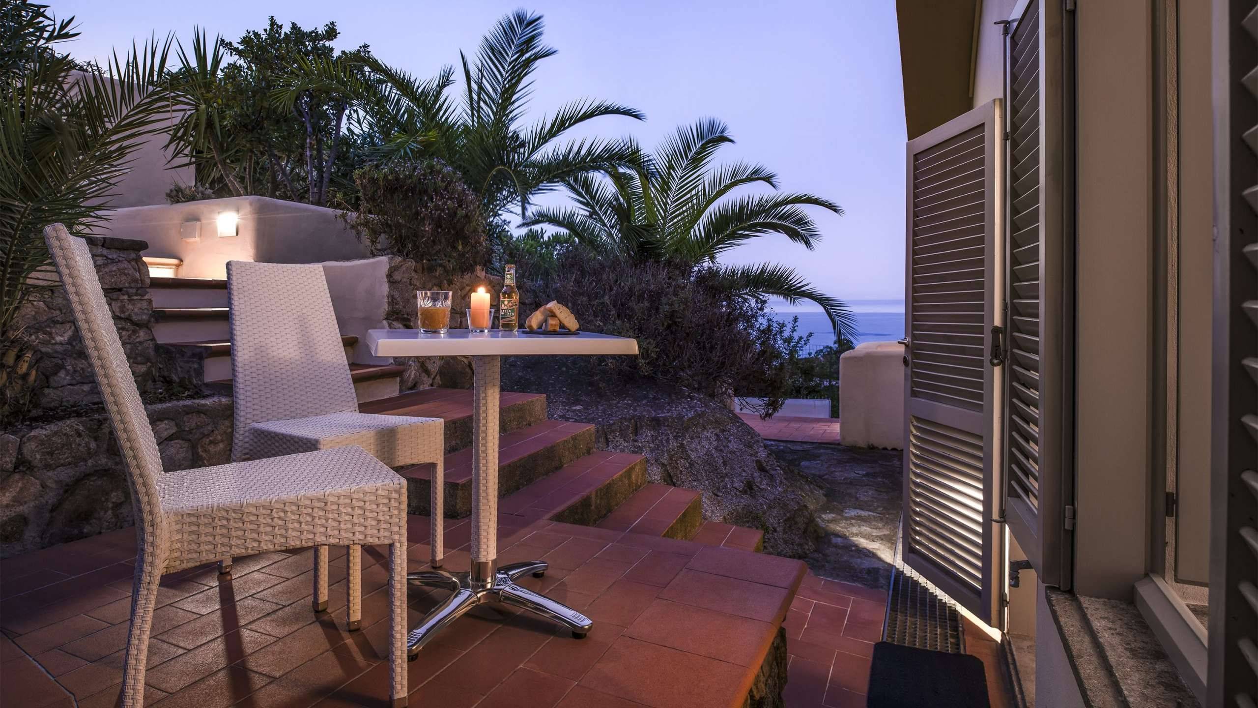Servizi in camera: vista mare laterale, telefono, TV a schermo piatto, cassaforte, aria condizionata, scrivania, riscaldamento, ingresso indipendente, pavimento in legno o gres porcellanato, armadio a vista, doccia, asciugacapelli, set di cortesia, bagno privato, frigobar.