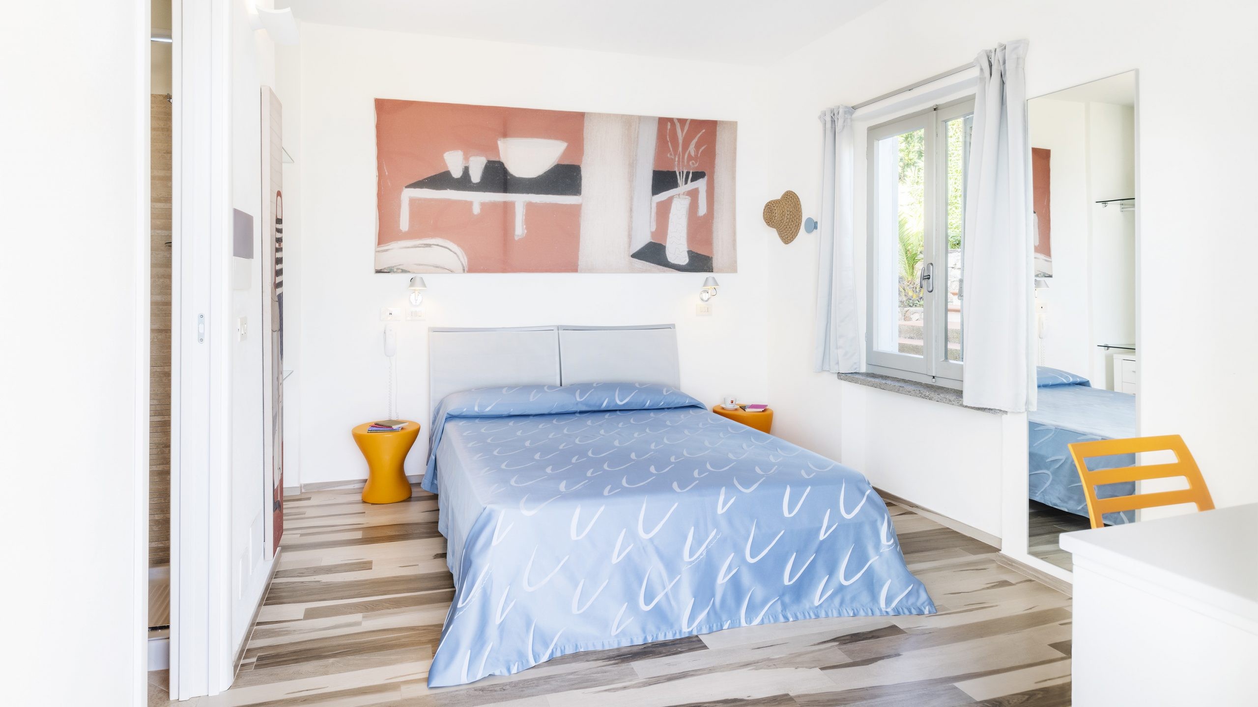 Servizi in camera: vista laterale/frontale mare, telefono, TV a schermo piatto, cassaforte, aria condizionata, scrivania, riscaldamento, ingresso indipendente, pavimento in gres porcellanato, armadio a vista, doccia, asciugacapelli, set di cortesia, bagno privato, frigobar.