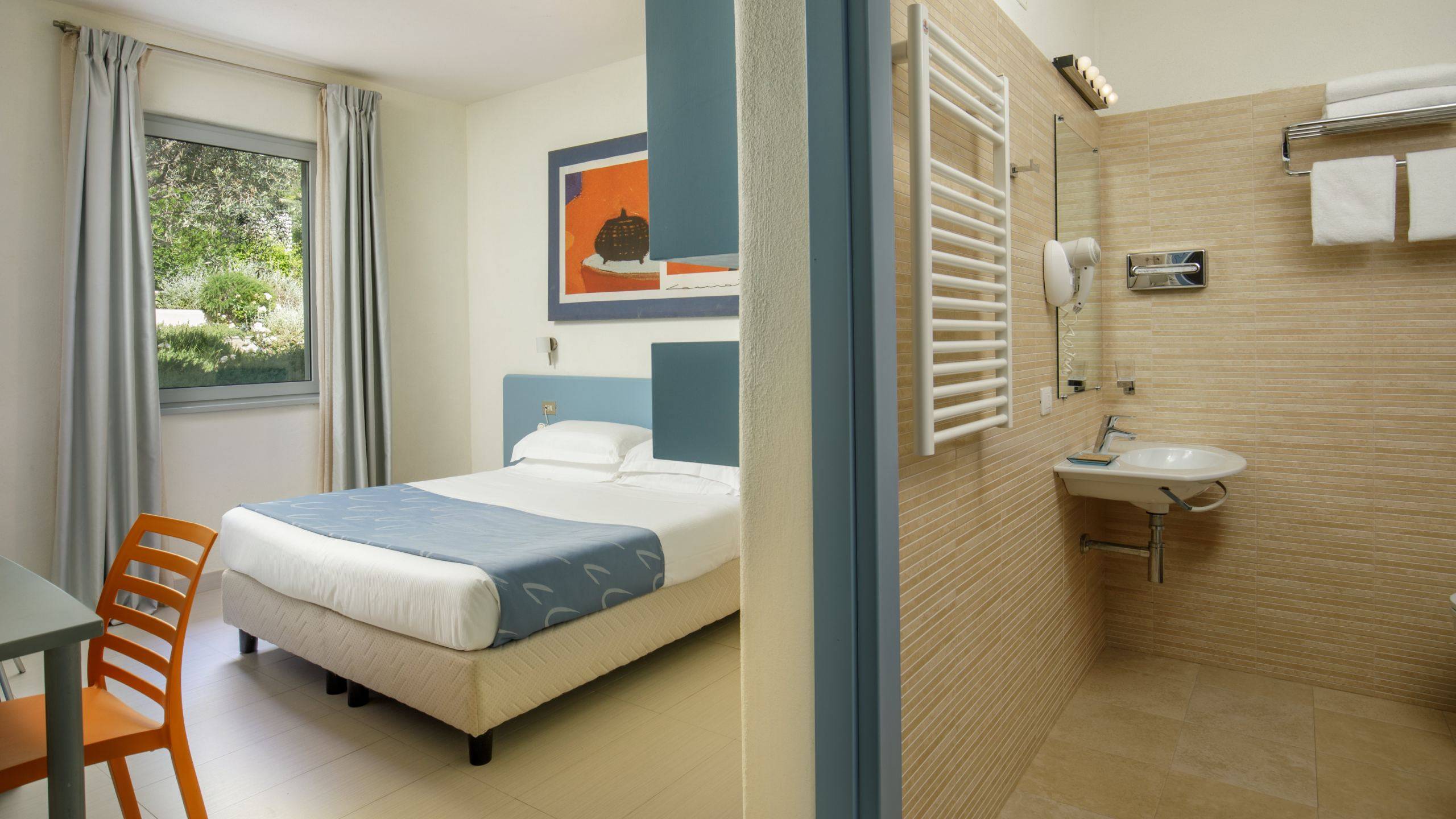 Rooms in minimal style with window on the well-kept garden with Mediterranean plants and flowers. From some of these rooms you can admire the medieval walls of Giglio Castello. Air conditioning, private entrance, flat screen TV, mini-bar and tiled floors.