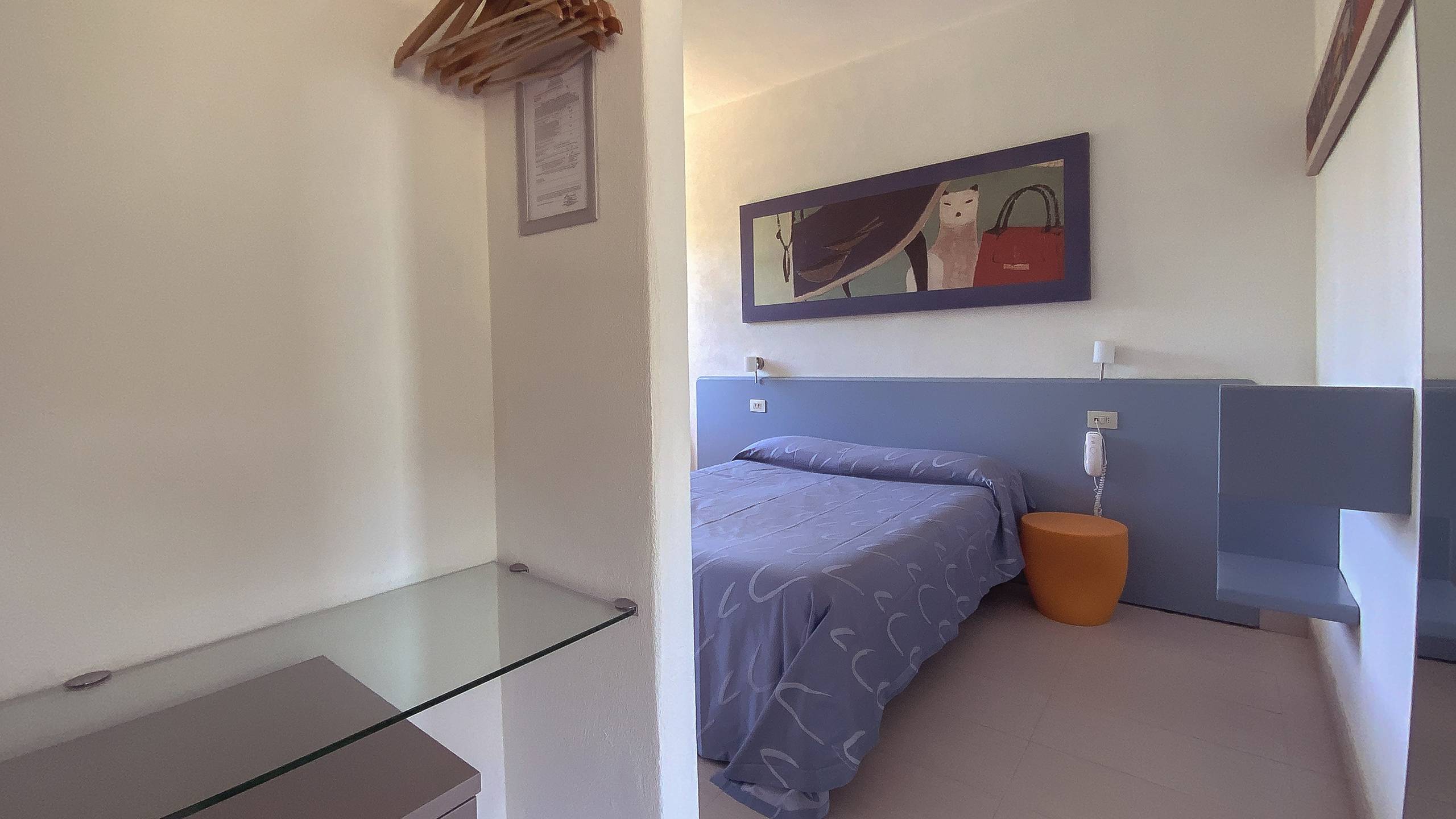 Camere in stile minimal piccole ma confortevoli con finestra vista collina. Ideale per single o per soggiorni brevi. Aria condizionata, ingresso privato, TV a schermo piatto, frigobar e pavimenti in piastrelle.